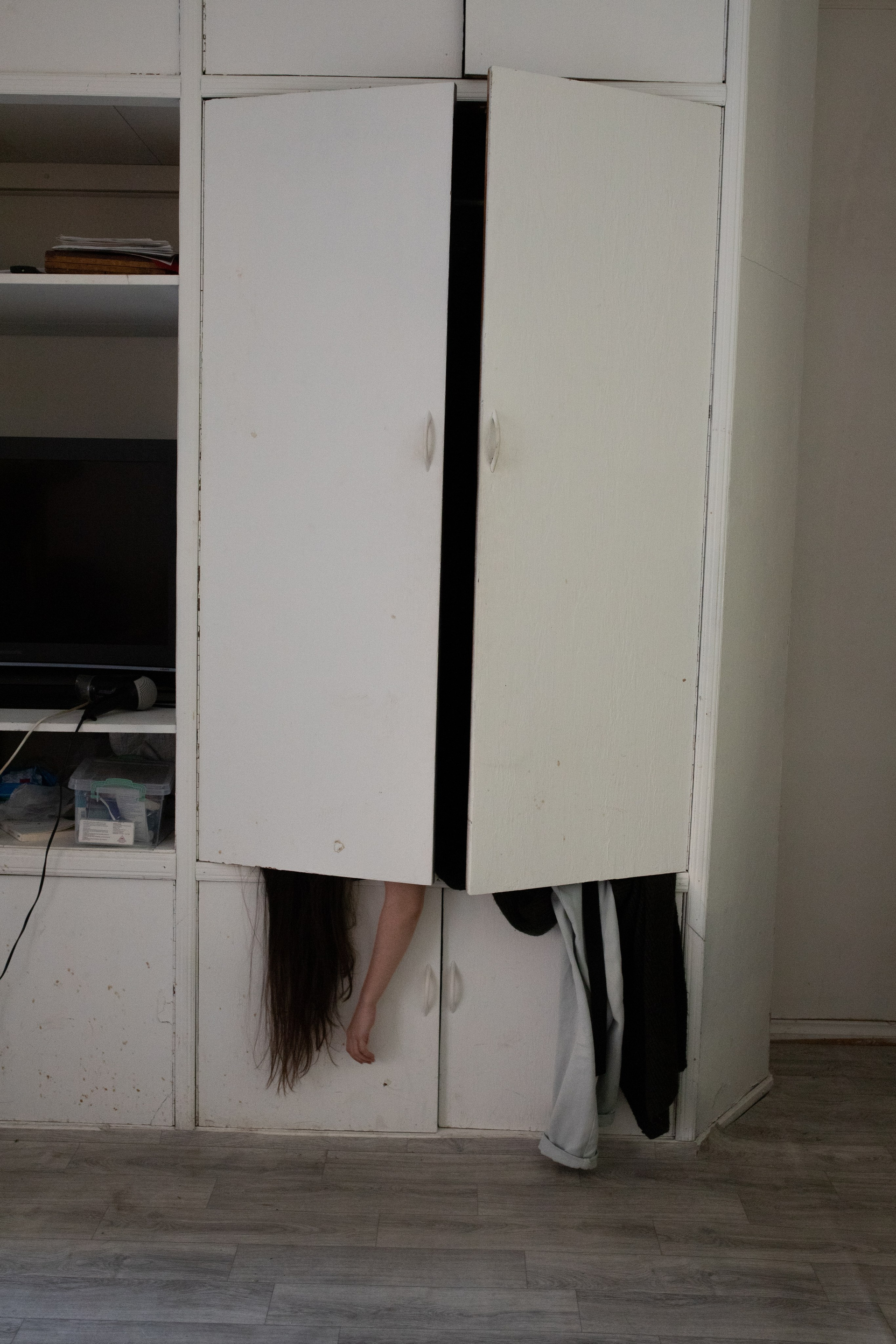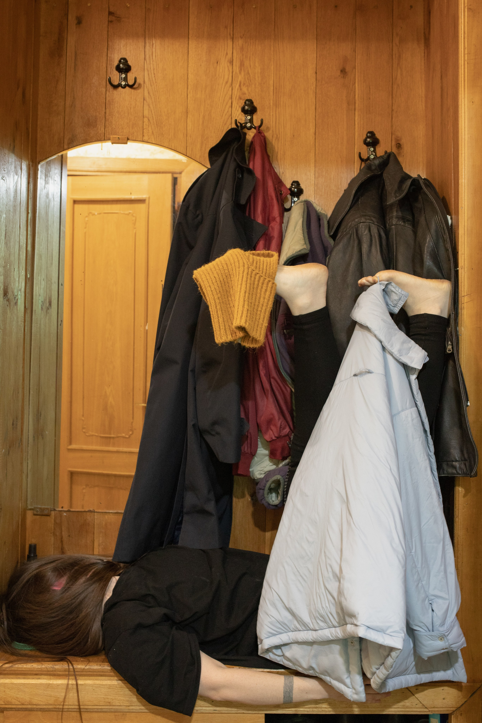 Весной 2022 года мои лучшие друзья переехали в Ереван, а я осталась в Москве. Я регулярно приезжаю к ним, и мы остаемся по-прежнему близки. Несмотря на это, меня мучает мысль о том, что мое присутствие больше не часть их повседневной жизни. А значит, со временем наша связь может ослабнуть или быть совсем утраченной. Во время очередного визита в дом своих друзей я сделала серию автопортретов, зафиксировав себя как часть их быта.